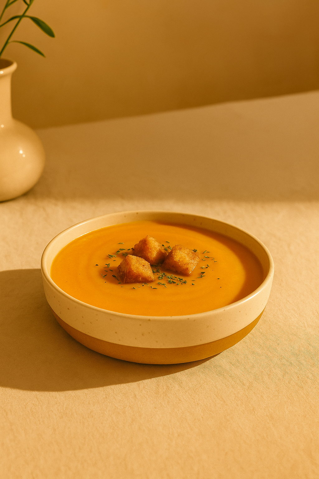 Una crema reconfortante perfecta para abrir cualquier comida o cena festiva. Elaborada con boniato, naranja, jengibre, leche de coco y un toque de azafrán.